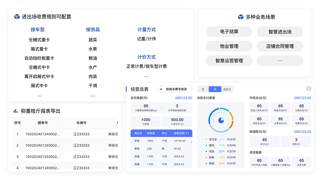 金馬衡器智慧農(nóng)批系統(tǒng)是集成市場(chǎng)物業(yè)管理、電子結(jié)算、進(jìn)出場(chǎng)管理等系統(tǒng)為一體的綜合解決方案,結(jié)合金馬衡器自研的電子臺(tái)秤、汽車衡器等智能物聯(lián)網(wǎng)設(shè)備,打造農(nóng)產(chǎn)品批發(fā)市場(chǎng)運(yùn)營(yíng)服務(wù)新模式,助力現(xiàn)代農(nóng)批市場(chǎng)數(shù)字化轉(zhuǎn)型升級(jí),實(shí)現(xiàn)業(yè)務(wù)的可持續(xù)化增長(zhǎng)