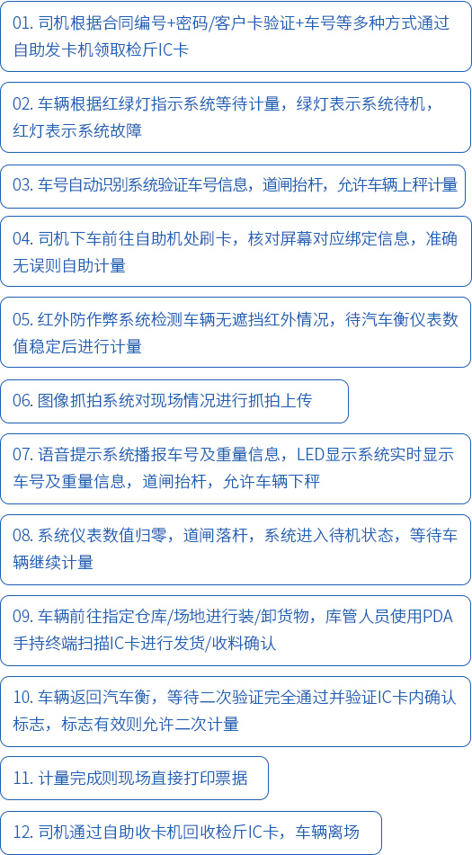● 采用先進(jìn)的紅外光感技術(shù),檢測車輛前輪后輪有無超出衡器范圍、后車是否緊跟壓秤等情況,規(guī)范計量流程。